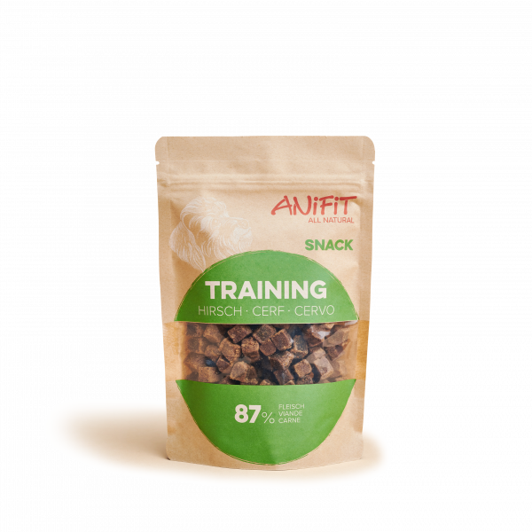 Kleine Belohnungen mit Hirsch-, Rind- und Geflügelfleisch, Joghurt und Mais. 87,5% Frischfleisch.