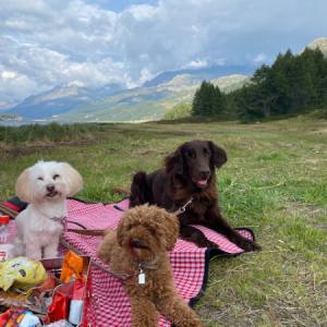 Nous sommes toujours en déplacement dans les montagnes avec nos Collies Freya et Gisa. Ici, nous sommes dans le Val Müstair, dans la belle Engadine :-) Nous serions très heureux de recevoir un fantastique set de randonnée pour nos longues randonnées en Engadine !